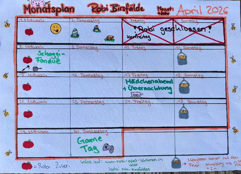 Der Robi Birsfelden lädt alle Kinder ab 6 Jahren ein, ihre Freizeit mit viel Spiel-, Werk- und Naturangeboten zu bereichern. Die Kinder besuchen den Spielplatz selbständig (ohne Begleitung von Erwachsenen).