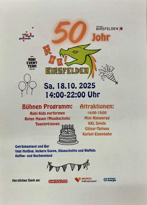 Am 18.Oktober feiern wir 50 Jahre Robi Birsfelden!